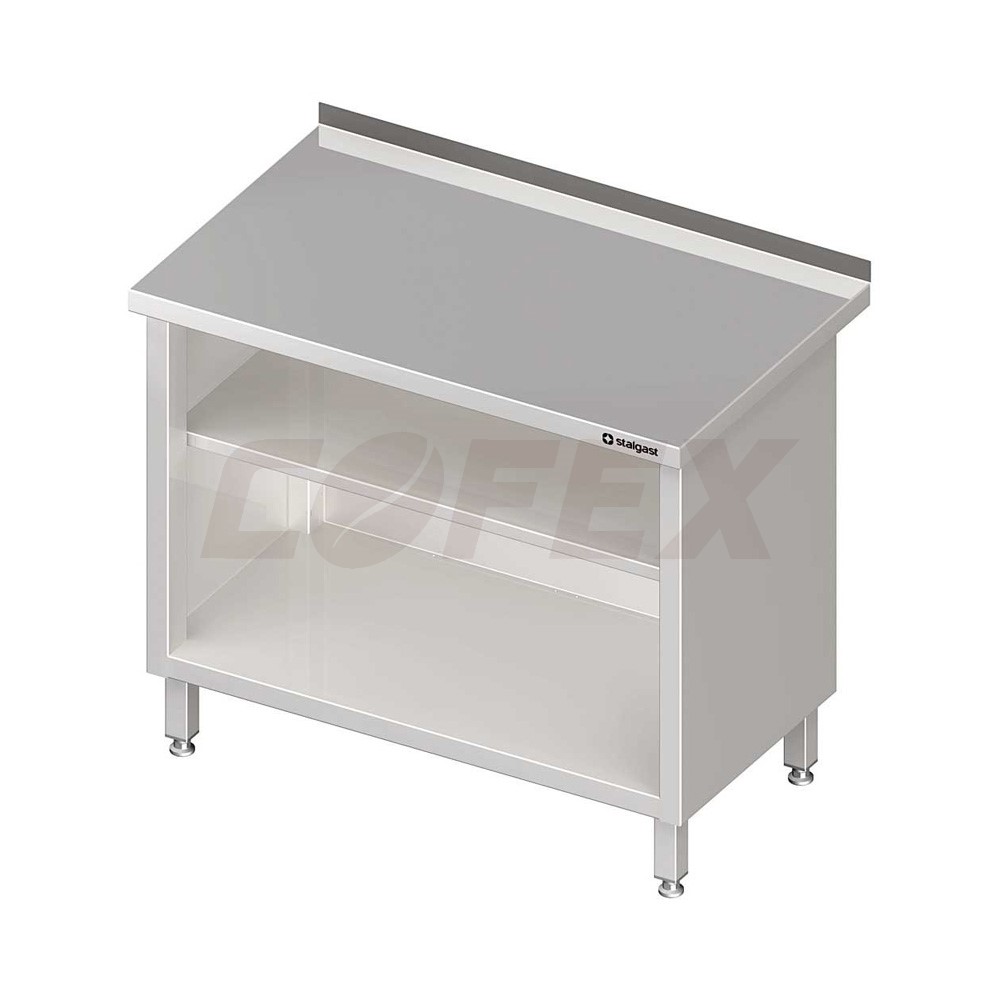 Pracovný stôl krytovaný STALGAST® - zváraný pracovný stôl z nerezu AISI 445 - z perdu otvorene - vystužená pracovná plocha s lemom a s dvoma policami - rozmery: 800x700x850mm