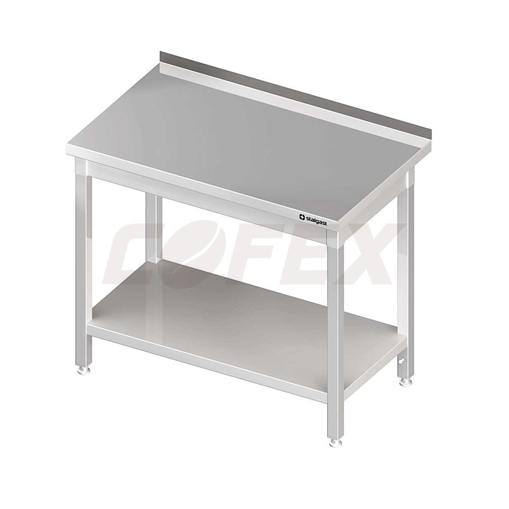 Pracovný stôl s policou STALGAST® - montovateľný pracovný stôl z nerezu AISI 445 - vystužená pracovná plocha s lemom a s policou - rozmery: 800x700x850mm
