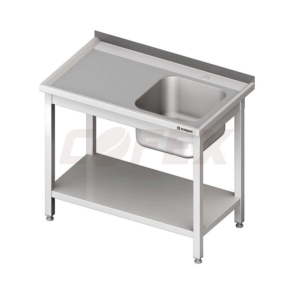 Umývací stôl s jedným drezom a s policou STALGAST® - montovateľný stôl z nerezu AISI 445 - s drezom 400x400x250mm a s lemom - rozmery: 1900x600x850mm