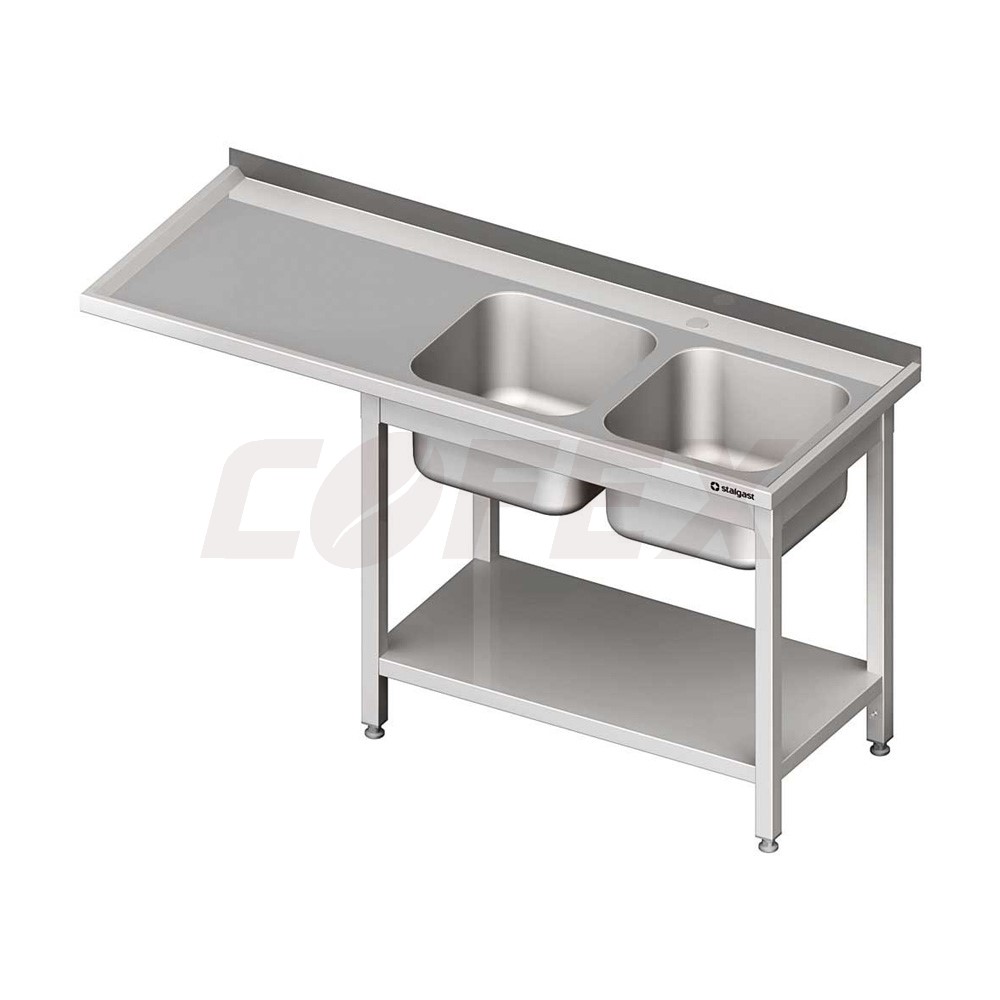Umývací stôl pre podstolovú umývačku STALGAST® - s dvojdrezom 500x500x250mm vpravo - zváraný stôl z nerezu AISI 445 - vystužená pracovná plocha s nerezovým profilom - rozmery: 1900x700x850mm