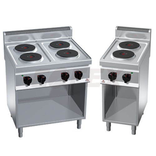 Elektrický sporák BERTO´s 4 x 2,6 kW - elektrické platne s priemerom 220 mm - s otvoreným podstavcom - výkon 4 x 2,6 kW - 400 V – rozmery 800 x 700 x 900 mm